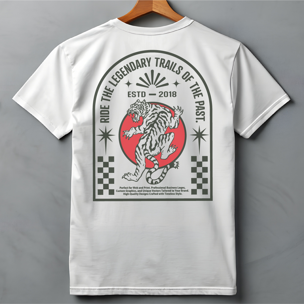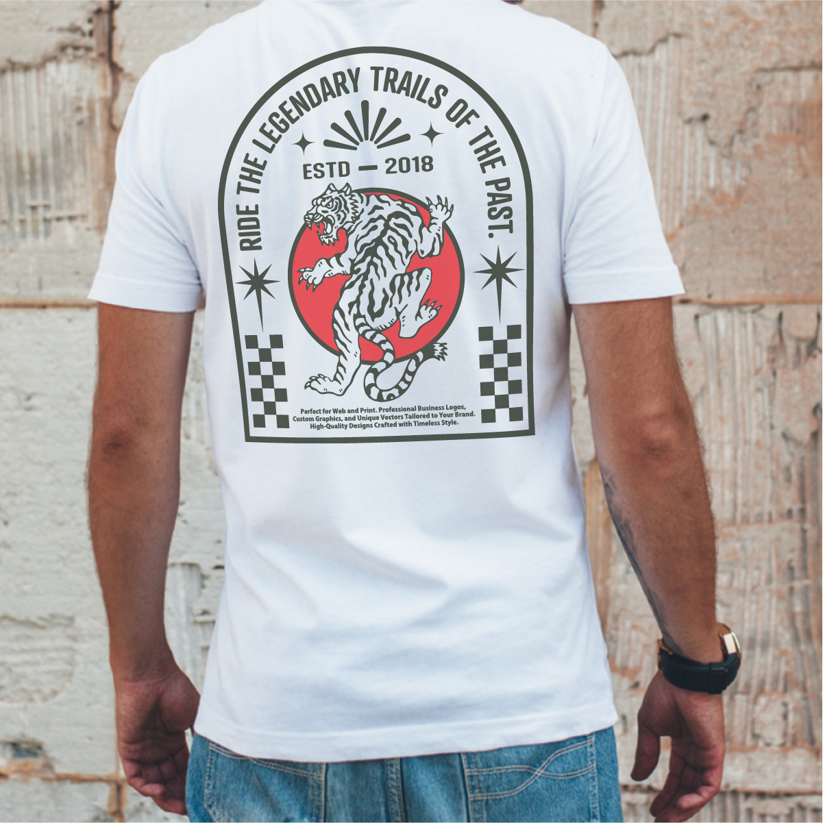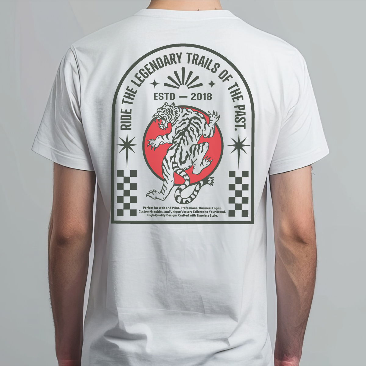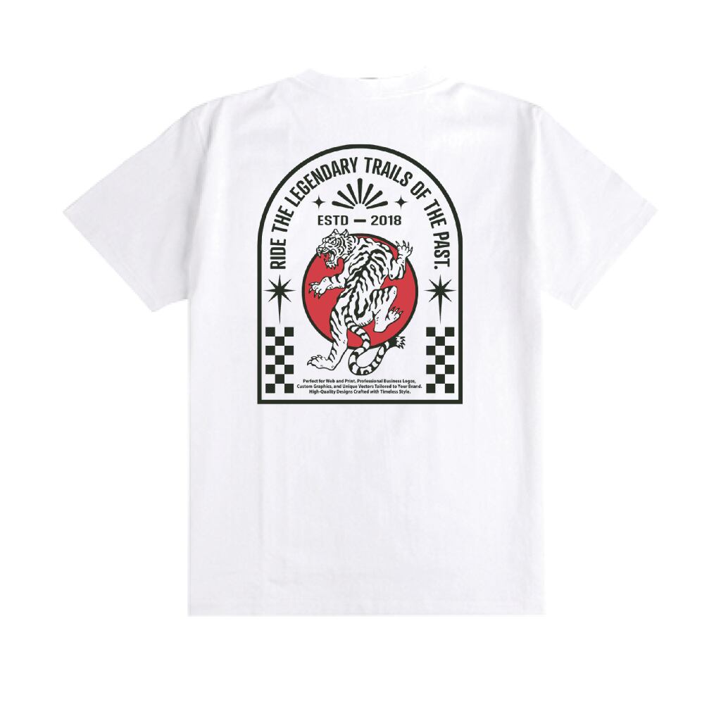 ブランドの精神性を示す "RIDE THE LEGENDARY TRAILS OF THE PAST."(過去の伝説的な道を駆け抜けろ)をテーマにした、重厚なメッセージを纏う一着。 背面に描かれたのは、日の出のような赤い円を背に咆哮する虎。それは、歴史や伝統をリスペクトしながらも、現代において圧倒的な存在感を放つ「LONEFELLOWS」の象徴です。