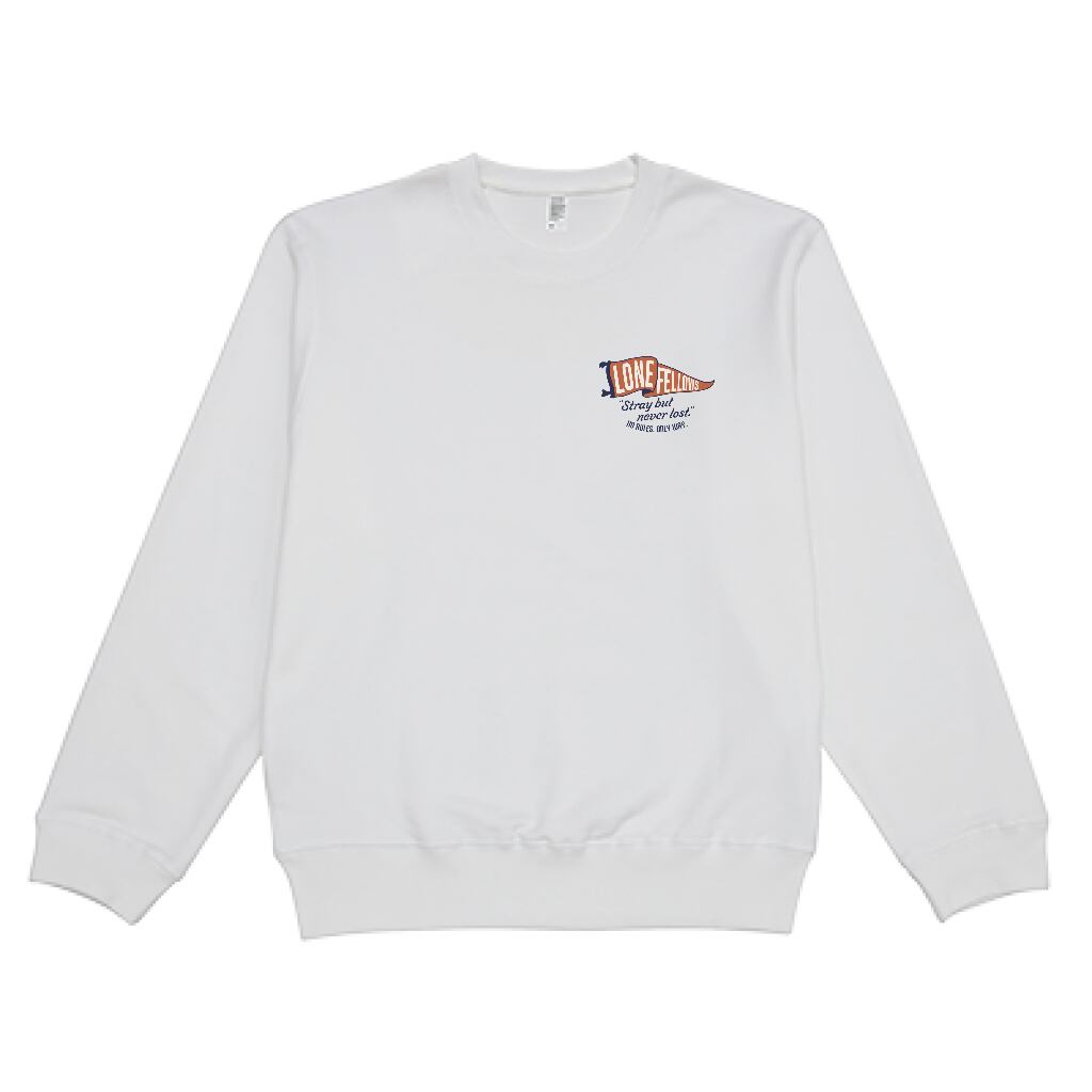 Front View: 左胸にはLONEFELLOWSのメインロゴ(ペナントロゴ)を配置。スウェットの肉厚な生地に映えるアイコニックなロゴが、ブランドへの忠誠と品質を証明します。
